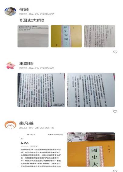 本次活动由阅读打卡和问题讨论两部分组成。每日23时30分之前,同学们在小程序内拍照分享自己所读历史或旅游类书籍及读书笔记,并不定期参与相关问题的讨论。活动过程中,同学们深入阅读、鉴往知来,充分体会到了历史和旅游著作中蕴含的学科思想、人文精神、价值理念和道德指引。此外,同学们积极参与专题讨论活动,对于历史问题提出自己的看法,展现了同学们丰富的知识储备和慎思明辨的优秀品质。