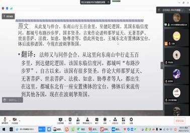 本次活动依然由同学们各自分配任务,线下阅读后制作Word文档或者PPT形式展示阅读笔记,并结合自己的阅读理解进行讲解,每个人讲解后由杨学勇老师补充解释。最后由杨学勇老师深入讲解《大慈恩寺三藏法师传》。本次读书会主要阅读了玄奘法师在西行途中经过中亚,克服困难一往无前的故事。整场活动内容充实,学习效率高,学习兴趣高昂,获得了大家的喜爱,期待下次活动的开展!