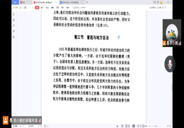 2022年9月11日,新葡的京集团8814春秋读书会国史大纲组在张焕君老师的带领下于腾讯会议展开了2022年下半年第二次读书活动。