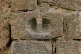 在先民的理念中石碾和石磨是主要的粮食加工工具,分别象征青龙和白虎两大镇魔压邪之物。石碾一般在村子中心位置的偏左方,石磨则在院子中心的偏右方,有左青龙右白虎一说。(图7)院外的牲口圈也是石窑洞,栓马桩就垒在墙上,栓马庄是用整块石块雕刻而成,精美而实用。(图8)