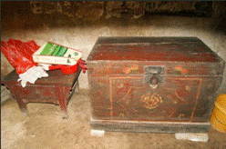 一家大门上方的牌匾“慎德”,说明在这里居住的先民们不是只懂耕种,他们还具有悠远的文化积淀。(图13)古民居内的风格,火炕占据了大部分面积 ,里面的是灶台,生火做饭的同时加热了屋里的火炕。(图14)古民居内的家俱,古色古香。(图15)