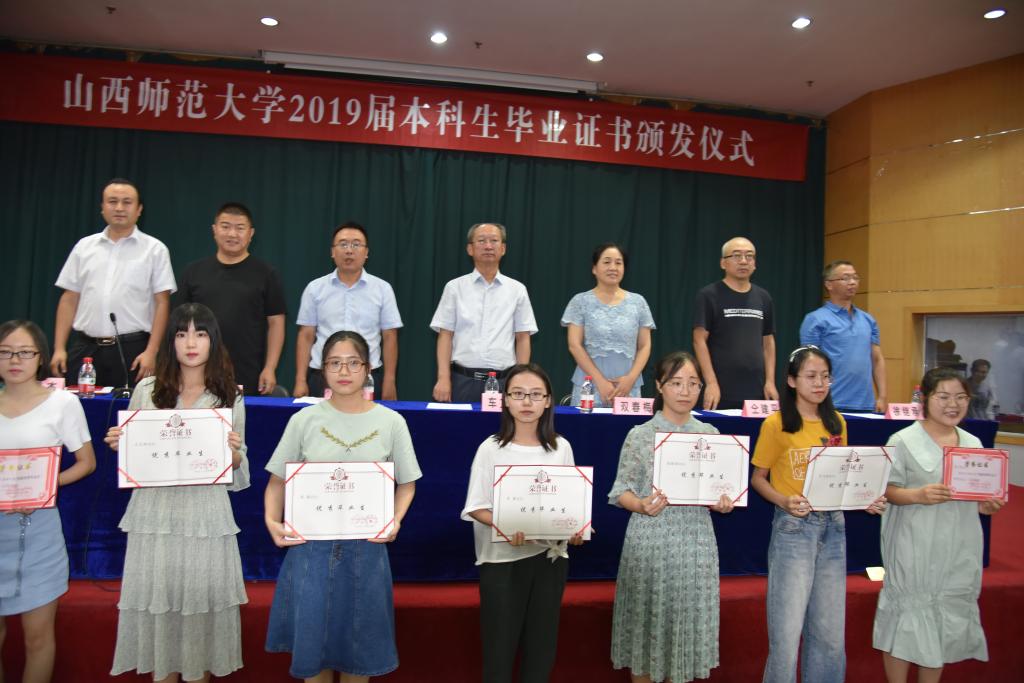 典礼在庄严的国歌声中拉开帷幕。学院副院长侯慧明教授宣读了新葡的京集团8814关于表彰优秀毕业生的名单,车校长、学院领导及系主任为获奖的优秀毕业生颁发了荣誉证书。紧接着大会举行了2019届毕业生毕业证书颁发仪式,副院长仝建平教授宣读了山西师范大学关于新葡的京集团8814毕业生资格审查结果,并宣读了颁发证书名单。今年我院共有229名毕业生顺利取得毕业证书和学位证书,仝院长对毕业生们表示了祝贺。