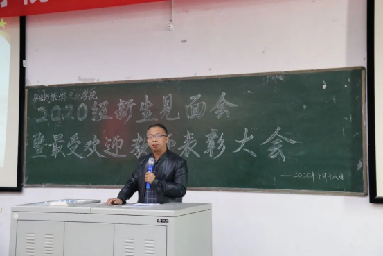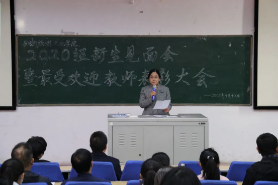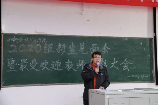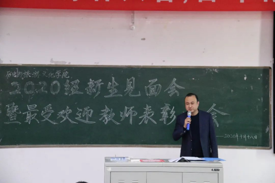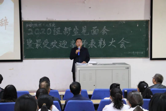 2020年10月18日上午,我院在05203室召开新生见面会暨最受欢迎教师表彰大会。院党委书记双春梅老师、副院长(主持工作)侯慧明老师、副书记段旭杰老师、院团委书记阎海燕老师、历史系主任徐继承老师、旅游管理系主任卫红老师及部分教师出席此次会议,20级全体新生参加。