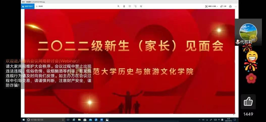 2022年9月15日上午,新葡的京集团88142022级新生(家长)见面会通过云端方式举办。全体院领导及学院中层干部、新生辅导员、2022级新生及新生家长参加了见面会。会议由院党委副书记郝艳红主持。