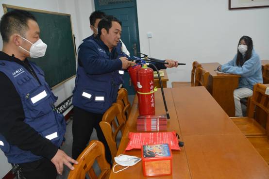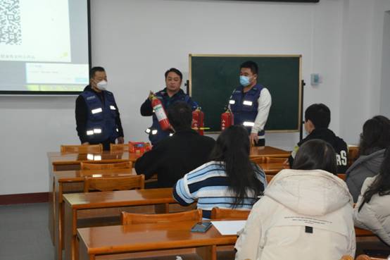 讲座中,消防科工作人员还为同学们现场讲解了灭火器、消防毡、防毒面具的使用方法,并对消防器材的使用方法进行了实操演练。现场的同学们还领取了《消防知识宣传手册》,更加直观地学习消防器材的使用要点。