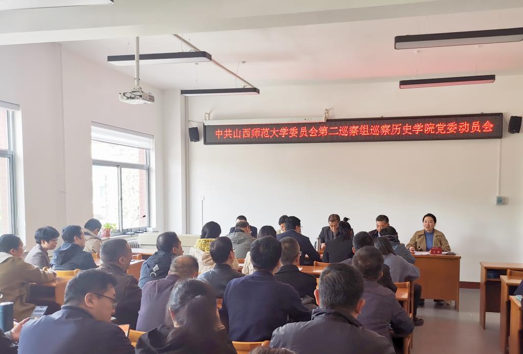 4月11日下午,中共山西师范大学委员会第二巡察组巡察新葡的京集团8814党委动员会在我院会议室召开。校党委巡察办副主任李莉静同志、第二巡察组组长吴建军同志、副组长卫建平同志及巡察组全体成员出席会议,会议由院党委书记王玮主持。学院领导班子及全体教师、部分学生代表参加了会议。
