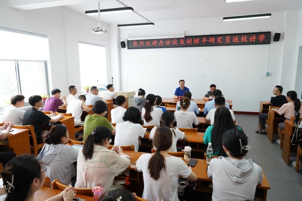 活动中胡继平研究员回顾了在师大学习成长的过程,并向师生介绍了目前从事的工作和研究方向,鼓励同学们要广泛读书,夯实学科基础、增加知识储备。当佩戴上学生代表献上的校徽后,他深情的表示是母校的精心培养和浓厚的学术氛围奠定了他走向今天的基础,他希望学弟学妹们能心怀梦想、脚踏实地,传承历史学院光荣传统,用所学报效祖国。校友工作办公室主任陈向波为胡继平研究员颁发了“学生成长导师”聘书。