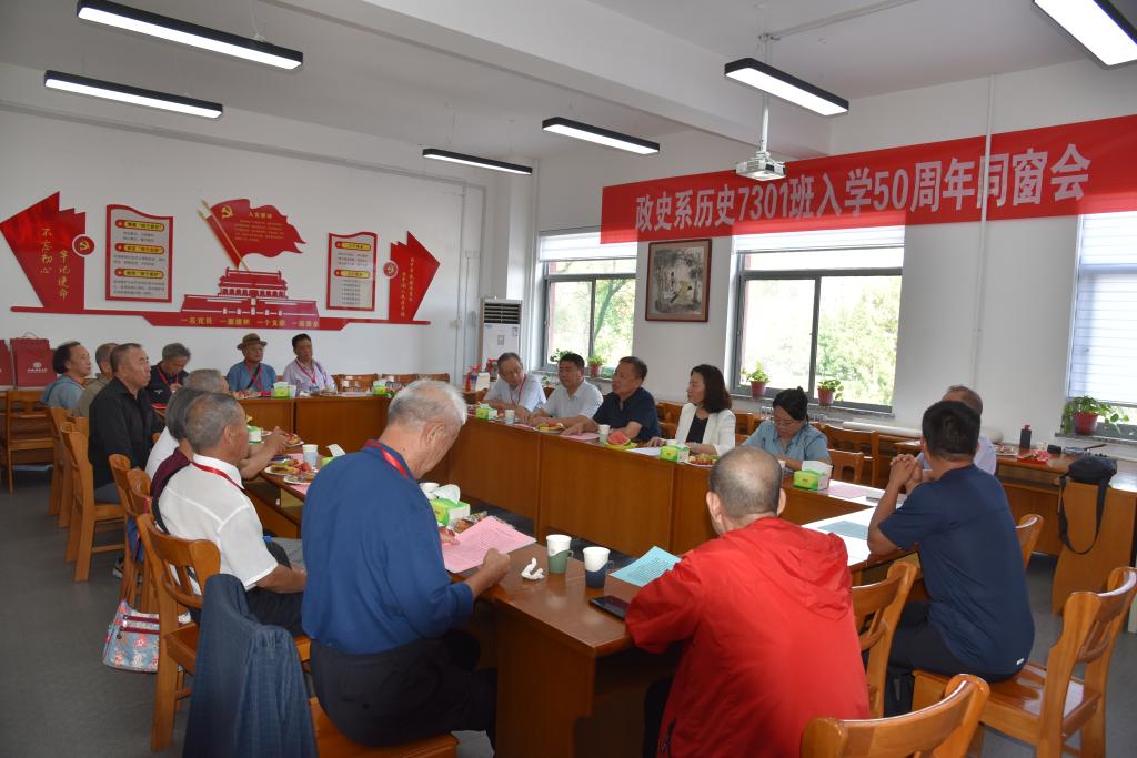 8月23日,政史系历史7301班十余名校友在入学50周年之际重返母校,在一号教学楼新葡的京集团8814会议室举行了交流会,追忆往昔时光,共话同窗情深。副校长王云出席了此次活动,交流会由新葡的京集团8814党委书记王玮主持。