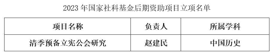 10月23日,全国哲学社会科学工作办公室发布《2023年度国家社科基金后期资助项目和优秀博士论文出版项目立项名单公示》。我院赵建民老师获批2023年度国家社科基金后期资助项目。