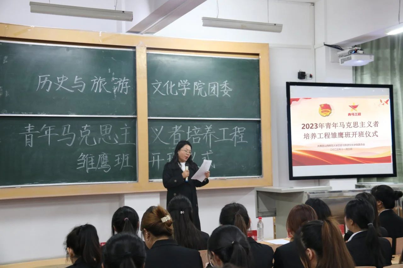 为进一步提升青年学生的综合素质,着力培养一批信仰坚定、能力突出、素质优良、作风过硬的青年马克思主义者,11月3日晚六点半我院于南区3310教室举办了2023年青年马克思主义者培养工程雏鹰班开班仪式。本次会议由王彤彤同学主持,院党委书记王玮老师、党委副书记郝艳红老师、院团委副书记代凯莉老师、院学生会主席团成员出席会议,全体青马班学员及各班团员代表参加会议。