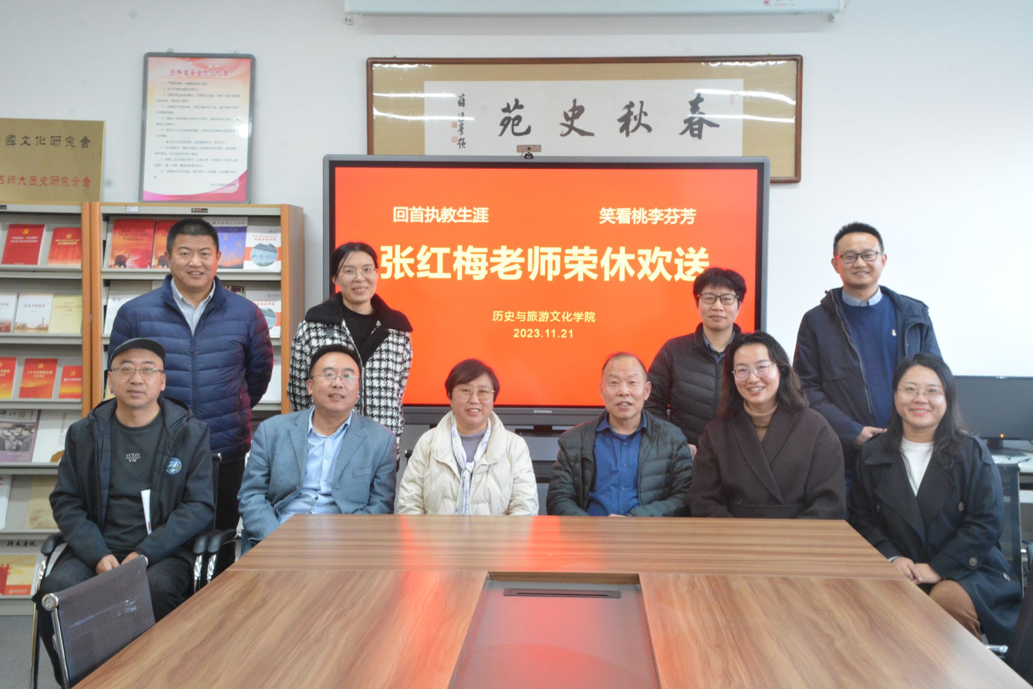 侯慧明院长介绍了张红梅老师在学院工作情况,对张老师二十余年来在工作岗位上兢兢业业、无私奉献,为学院的发展和学生的成长付出了努力和心血,奉献的青春和智慧表示深深的感谢。在场的教师们也一一回忆了与张老师共事的点点滴滴,对她今后的退休生活送上了诚挚的祝福。张红梅老师深情回顾了在师大在历史学院工作的难忘岁月,对学院的关爱和同事们的关心表示感谢,对学院近年来的发展尤其是旅游管理专业的不断发展感到骄傲和自豪。她分享了自己从教多年的感悟与体会,表达了对学院、工作和同事们的不舍,她表示在享受退休生活的同时,将结合自身实际,发挥特长优势,努力为国家和社会继续贡献力量,祝愿学院各项事业蒸蒸日上、越办越好。活动现场一阵阵欢声笑语,洋溢着温情、和谐的气氛。王玮书记在仪式最后代表学院为张老师送上了深深的祝福和荣休纪念品,希望张老师退休不褪色,一如既往地关心支持学院发展,在享受多彩退休生活之余,常回“家”看看。
