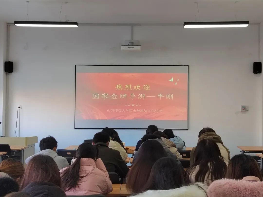 为感受导游职业的魅力,提升旅游管理专业学生的知识素养与专业认同,11月30日上午,我院特邀文旅部导游大师、国家金牌导游、山西省导游协会副会长牛刚于学院会议室举办了“《读历史,品山西》——做个骄傲山西人”讲座。本次讲座由我院旅游管理系主任卫红主持,旅游管理专业2207班全体学生现场聆听。