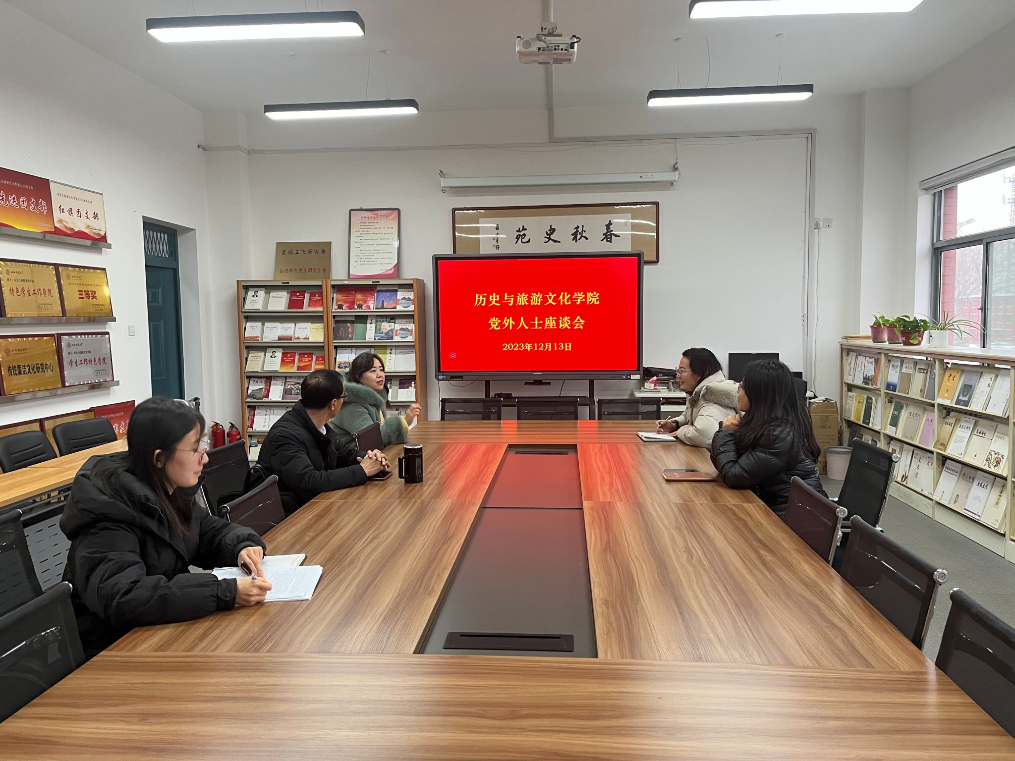 12月13日下午,我院在现刊阅览室召开2023年度党外人士座谈会。院党委书记王玮、院党委副书记郝艳红、院统战委员韩芳以及学院党外人士教师代表王宝龙、李淑芳参加了座谈会。座谈会由郝艳红副书记主持。