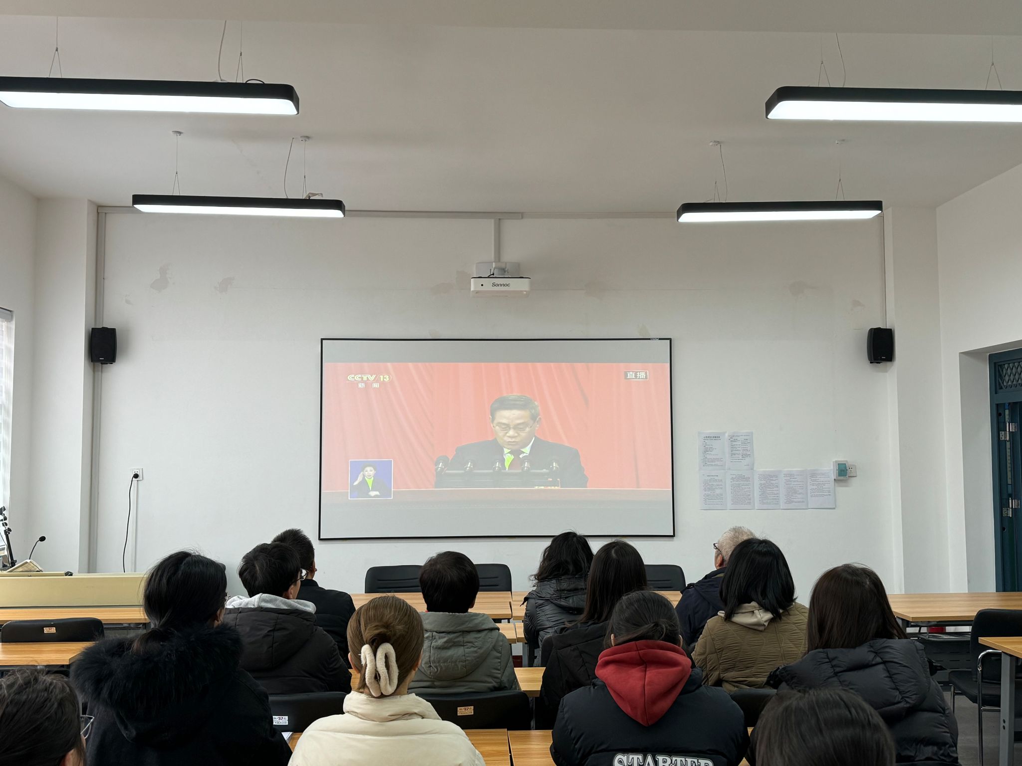 今年是中华人民共和国成立75周年,是实现“十四五”规划目标任务的关键一年,全国两会的召开对于凝聚全国各族人民共识,在党的领导下扎实推进高质量发展,以中国式现代化全面推进强国建设、民族复兴伟业具有重要意义。在学院会议室,院领导和部分党员师生集中观看了开幕会直播盛况,大家聚精会神认真聆听政府工作报告,感受党和国家过去一年取得的各项成就,了解2024年政府工作任务。观看结束后,师生们热情高涨、反响热烈,认为总理所作《政府工作报告》,旗帜鲜明、鼓舞人心、催人奋进。同学们纷纷表示将勇立志、争拼搏,在习近平新时代中国特色社会主义思想的指引下充实专业知识,锻炼综合能力,在实现个人理想和国家梦想的道路上,洒下热血,奋勇拼搏,激扬奋进力量。
