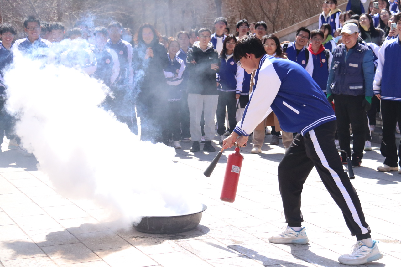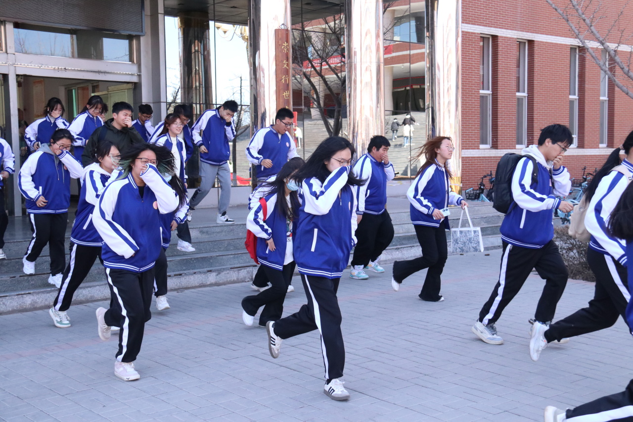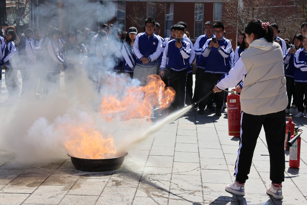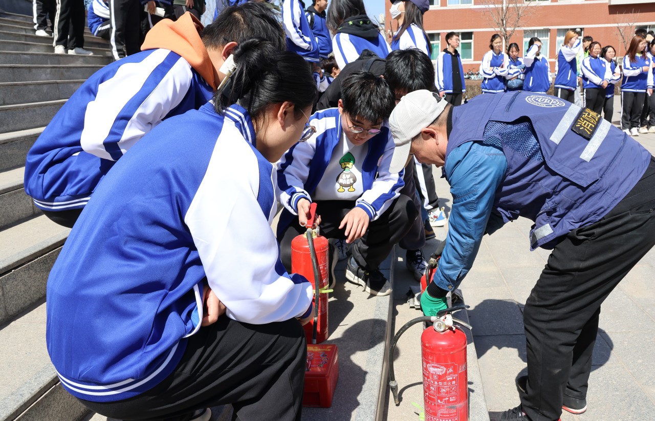 演练中,随着警报声响起,教学楼中的同学们以班级为单位在老师的指挥下,捂住口鼻,弯腰前行,按照指定路线快速撤离至安全场地。第一次演练结束后,校保卫部安全科崔哲老师进行了点评,对演练中存在的不足之处和注意事项进行了讲解和强调。随后同学们进行了第二次演练,大家吸取第一次演练的经验教训,在楼梯口、转角拐弯处适当放缓奔跑速度以避免出现拥挤踩踏,并从不同安全出口分散离开教学楼以避免人员密集拥堵的情况出现。到达空旷安全区域后,各班负责人迅速集中本班人员并清点人数进行汇报,圆满完成第二次演练。疏散演练结束后,崔老师从“进行消防演练的重要性”“消防知识四会四懂“、“不同灭火装置的使用方法”等方面为师生们进行了详细的讲解和示范,同学们也拿起灭火器在专业人士指导下进行了实操练习。