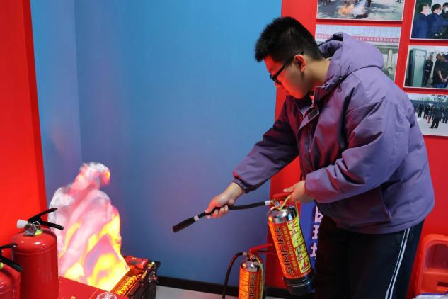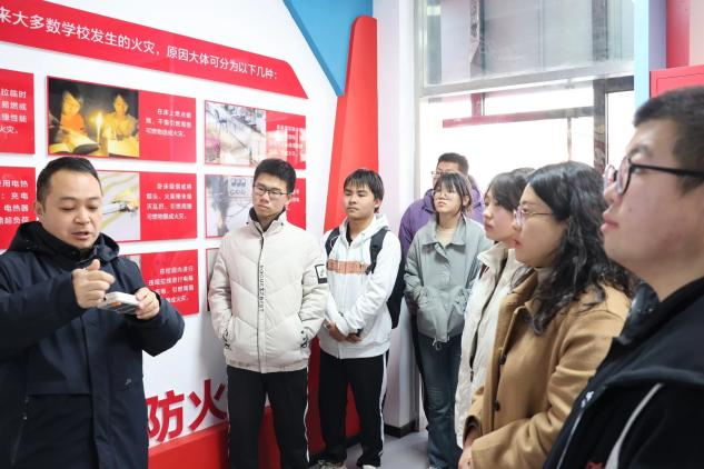3月11日上午,院党委副书记、学工组长郝艳红和专职辅导员赵泽州带领各宿舍舍长参观了保卫部消防宣传教育体验馆。同学们学习了解了消防面具、消防栓等消防用具的使用方法、学校的火灾预警系统。