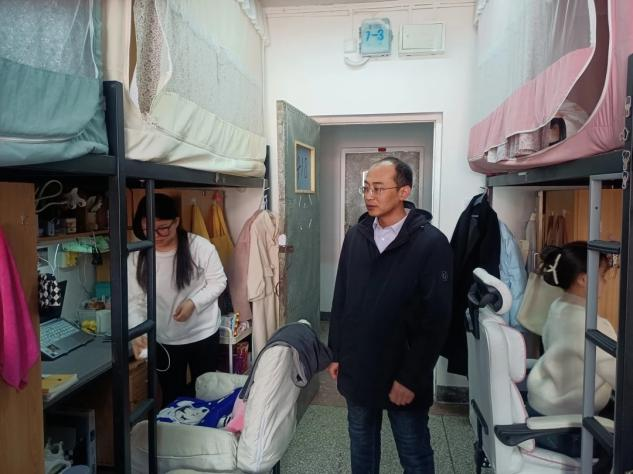 院学工组深入学生宿舍排查安全隐患,对学生目前的思想状况、学习生活、宿舍安全等方面深入细致了解,强调要坚决杜绝违规使用电器,严防火灾和人身意外事故的发生。