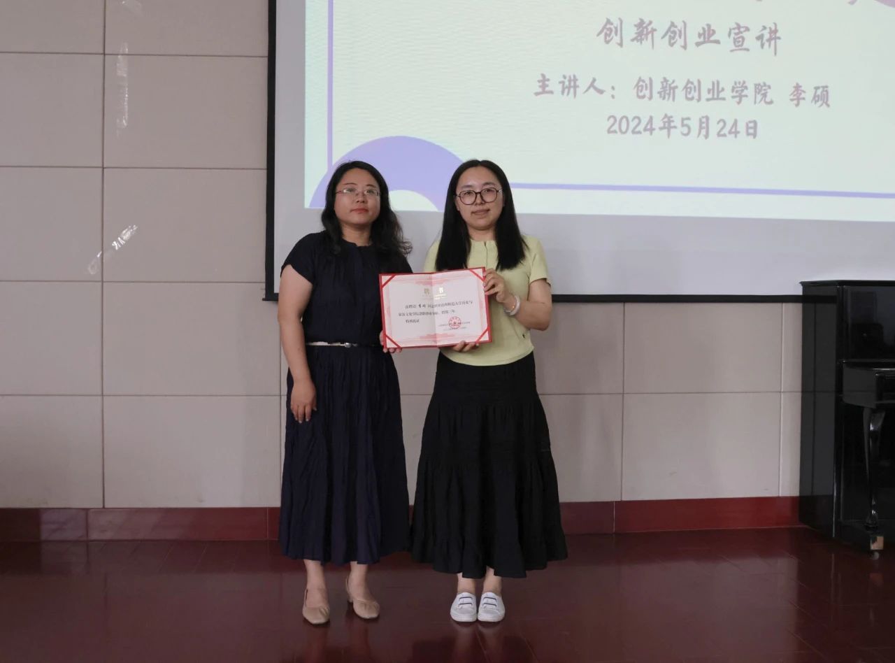 郝艳红副书记代表学院为李老师颁发了“创新创业赛事指导教师”聘书。