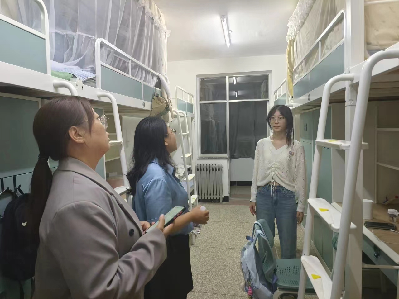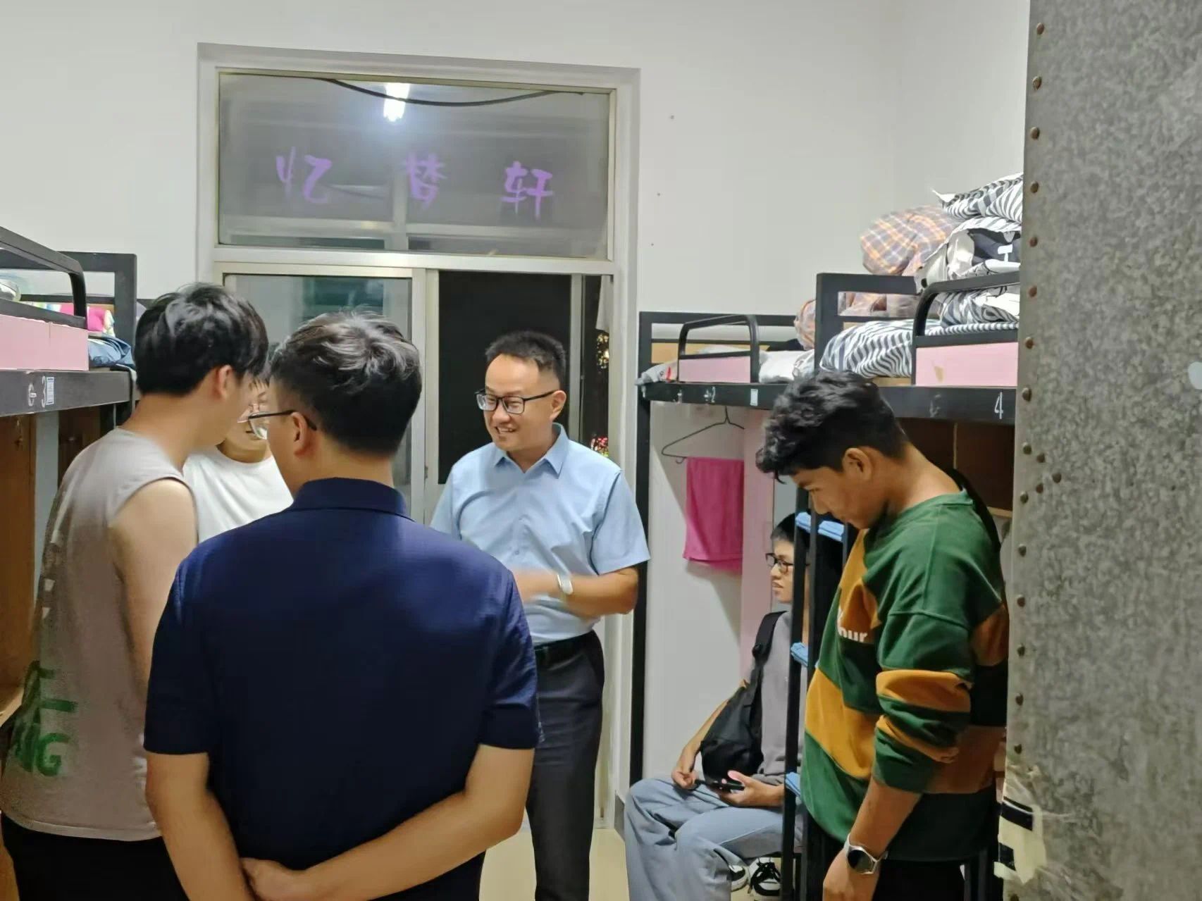 为深入了解2024级新生报到入学和宿舍生活情况,传递学院的温暖与关怀,帮助新生尽快融入新的环境,9月7日晚,院党委书记王玮、院党委副书记郝艳红、副院长霍斌、院团委副书记代凯莉及2024级各班辅导员和辅导员助理分组前往宿舍问候看望新生。