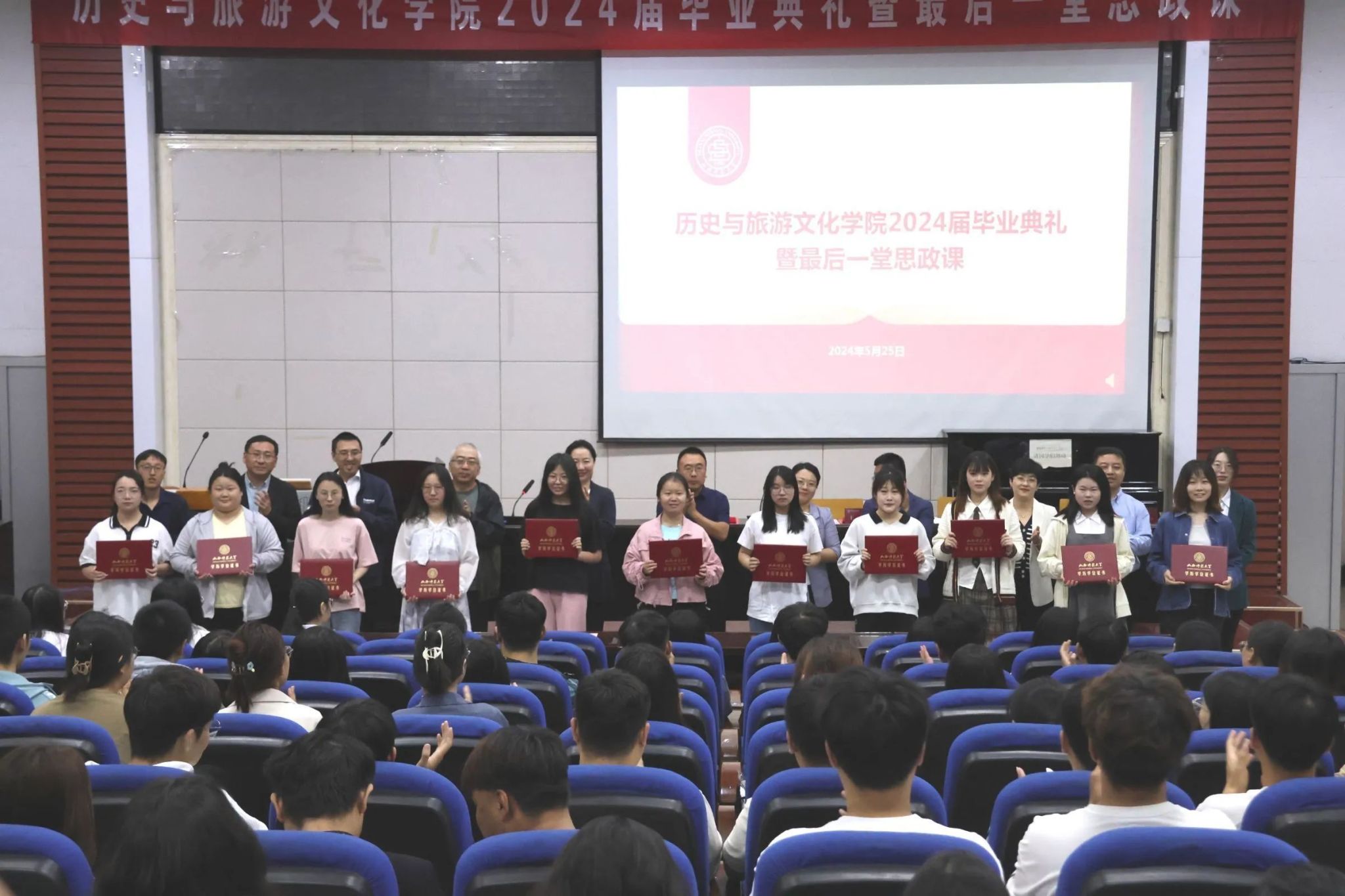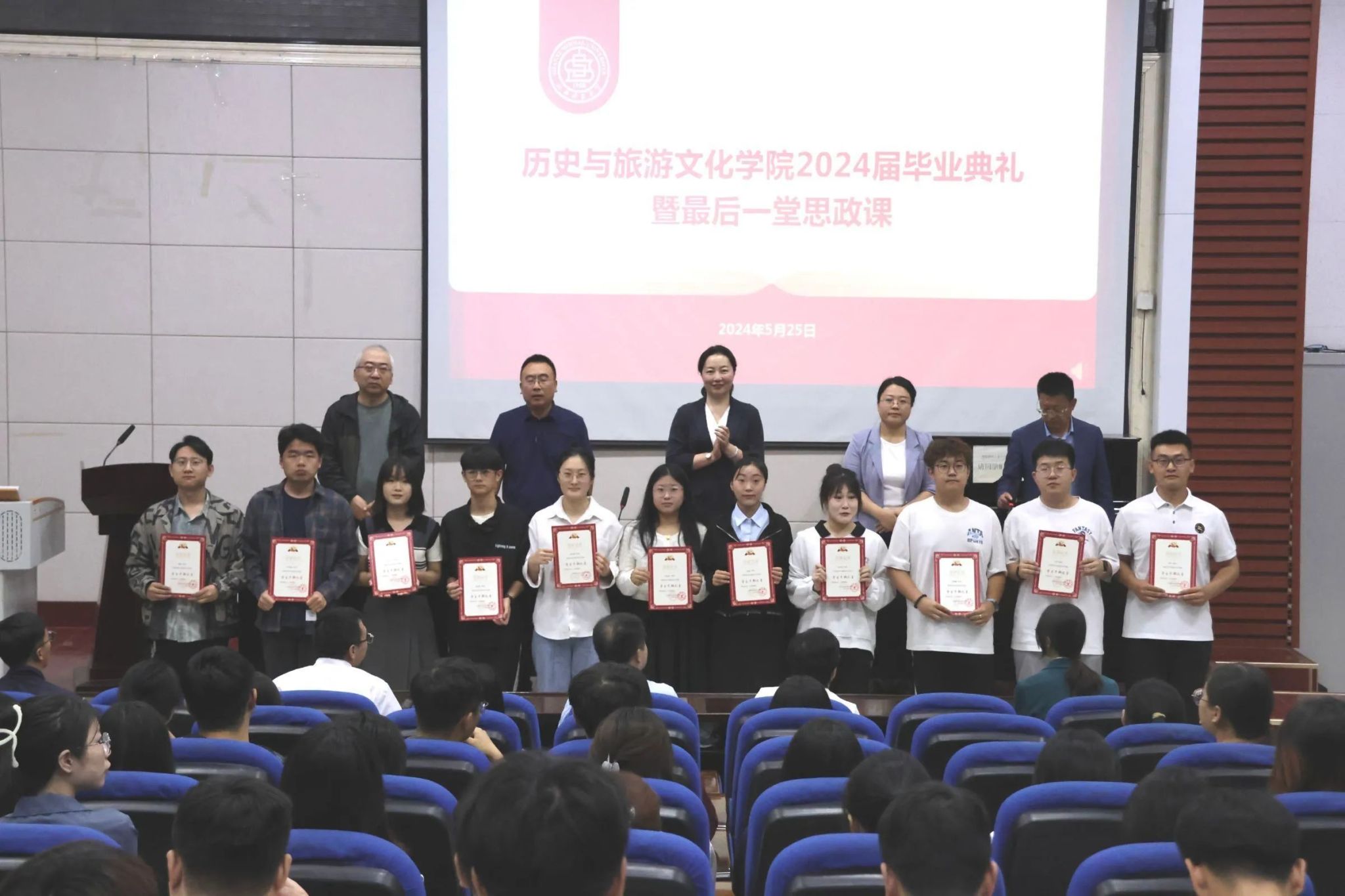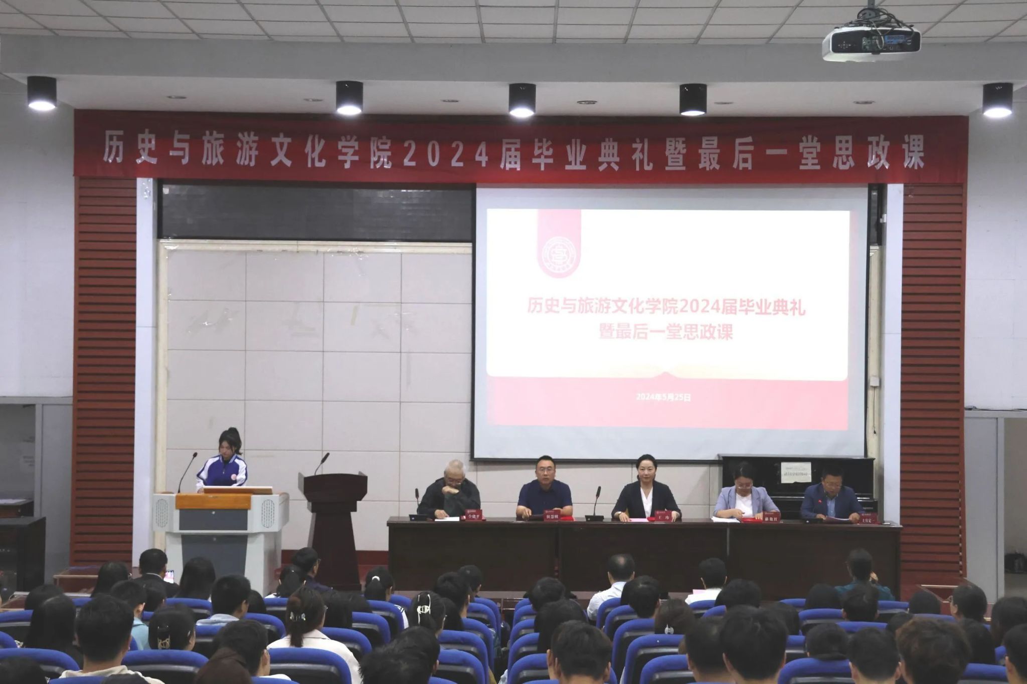 来日方长暂作别,寻光而往踏歌行。5月25日上午,我院2024届本科生毕业典礼暨最后一堂思政课于实验楼一层报告厅隆重举行。院党委书记王玮,院长侯慧明,院党委副书记郝艳红,副院长仝建平,院团委副书记代凯莉,教师代表鲁靖康,毕业班辅导员阎海燕、赵文杰、张江峰出席典礼。学院办公室主任上官定一主持仪式。
