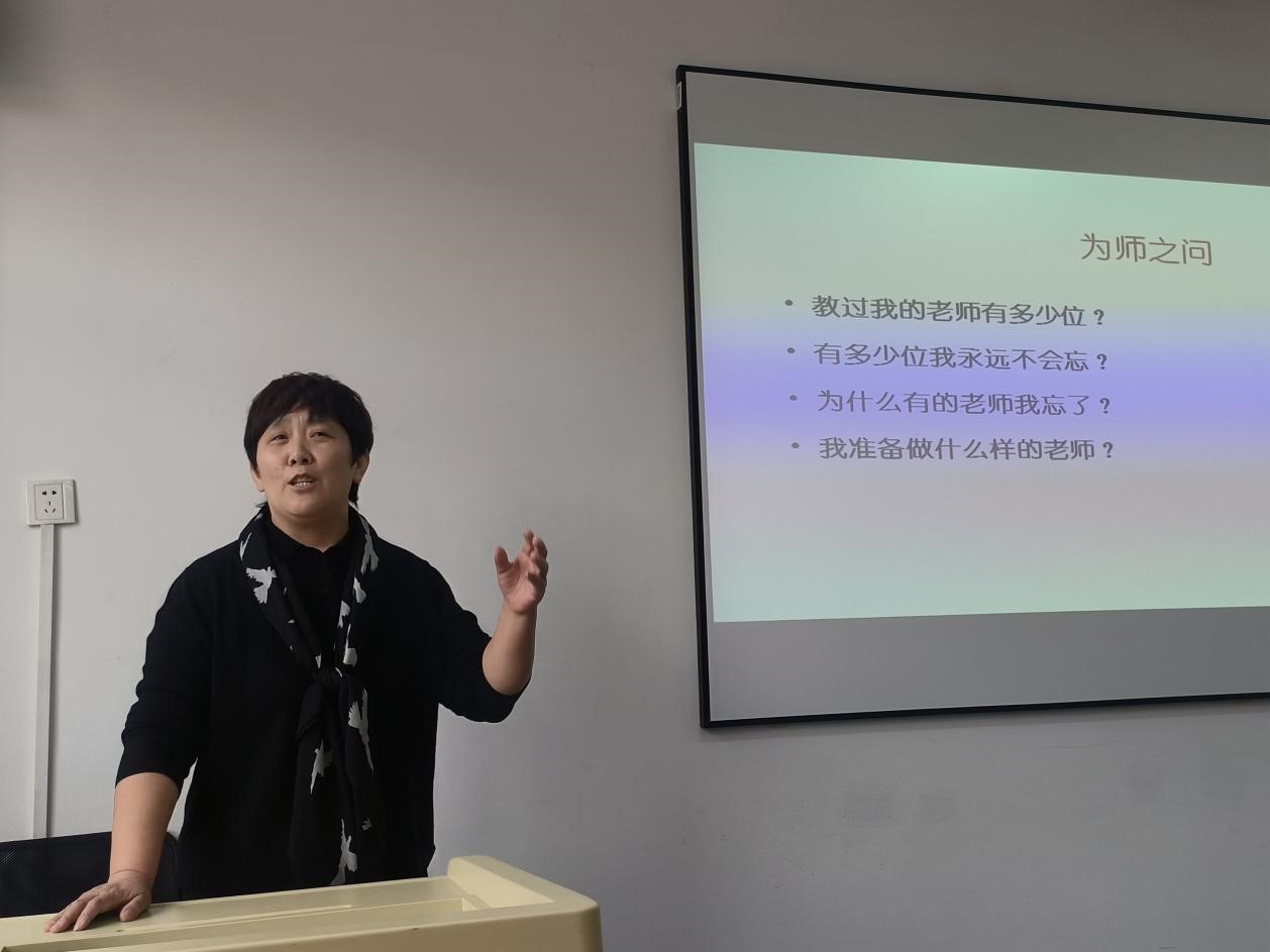 讲座中,辛老师以“为师之问”导入,以于漪等教学名师的故事为例指出教师的言行对学生产生的深刻影响,强调教师应当要努力成为实践性反思者。她结合自身从教经历引导同学们要在专业精神、专业知识与专业技能上达到更高的标准与要求。