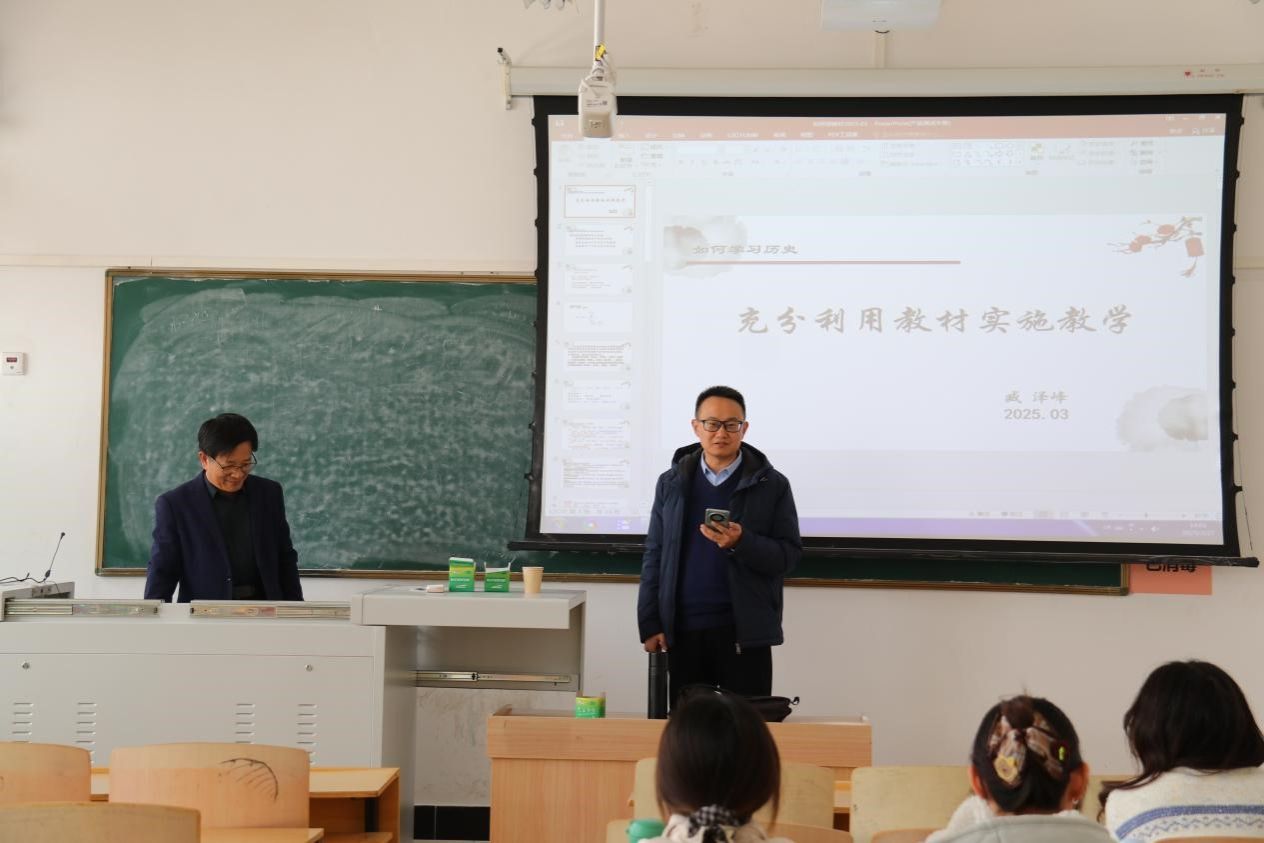 为深化历史学科教学改革,提升师范生专业素养,3月27日,我院特邀太原师范学院附属中学历史特级教师臧泽峰老师以“充分利用教材实施教学”为主题为历史学师范生开展教学活动。活动由副院长霍斌老师主持。