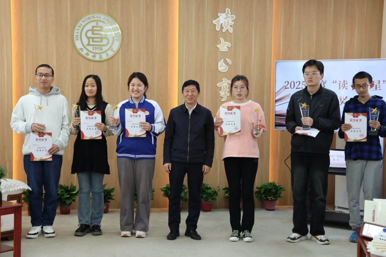 活动现场,校党委副书记王志强为荣获2025年度山西师范大学“读书之星”荣誉称号的马克思主义学院博士研究生赵盈伟、经管学院本科生王慧琳等六位同学进行了颁奖并分享感悟。他指出,书籍是人类进步的阶梯,阅读是跨越古今的对话,在阅读中能感受到文字之美、世界之美、成长之美、宁静之美和思辨之美。他勉励同学们对待读书应从被动变为主动,坚持多读书、读好书,享受阅读带来的愉悦与充实。他希望春秋读书会在坚持提升学生专业素养、道德修养和综合素质的理念下,加强对优秀文化的传承与传播,在助力书香师大、书香社会的建设中发挥更多更大的作用。
