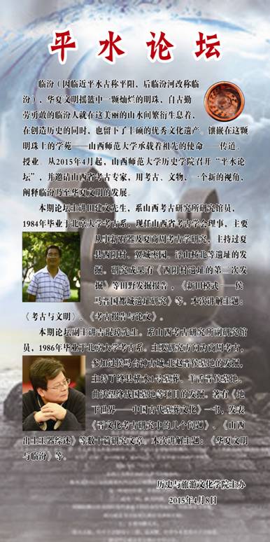 2015年4月8日上午,新葡的京集团8814研究生系列学术讲座“平水论坛”正式开幕。“平水论坛”将邀请省内外考古、文物、区域历史文化的专家学者为我院研究生讲学,进一步帮助同学们完善知识结构,推进历史与考古的结合,以提高晋国史、地方学研究水平。论坛的首场报告邀请的是山西省考古研究所吉琨璋研究员,题目为《晋国考古漫谈》。本次论坛由副院长张焕君教授主持,历史学院及相关院系的研究生与教师参加了这次论坛。