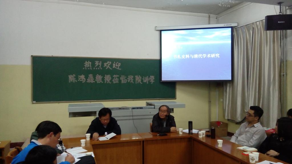 2015年10月22日晚,应历史学院邀请,台湾“中央研究院”历史语言研究所研究员陈鸿森先生为我院研究生同学作了题为《书札史料与清代学术研究》的学术报告。