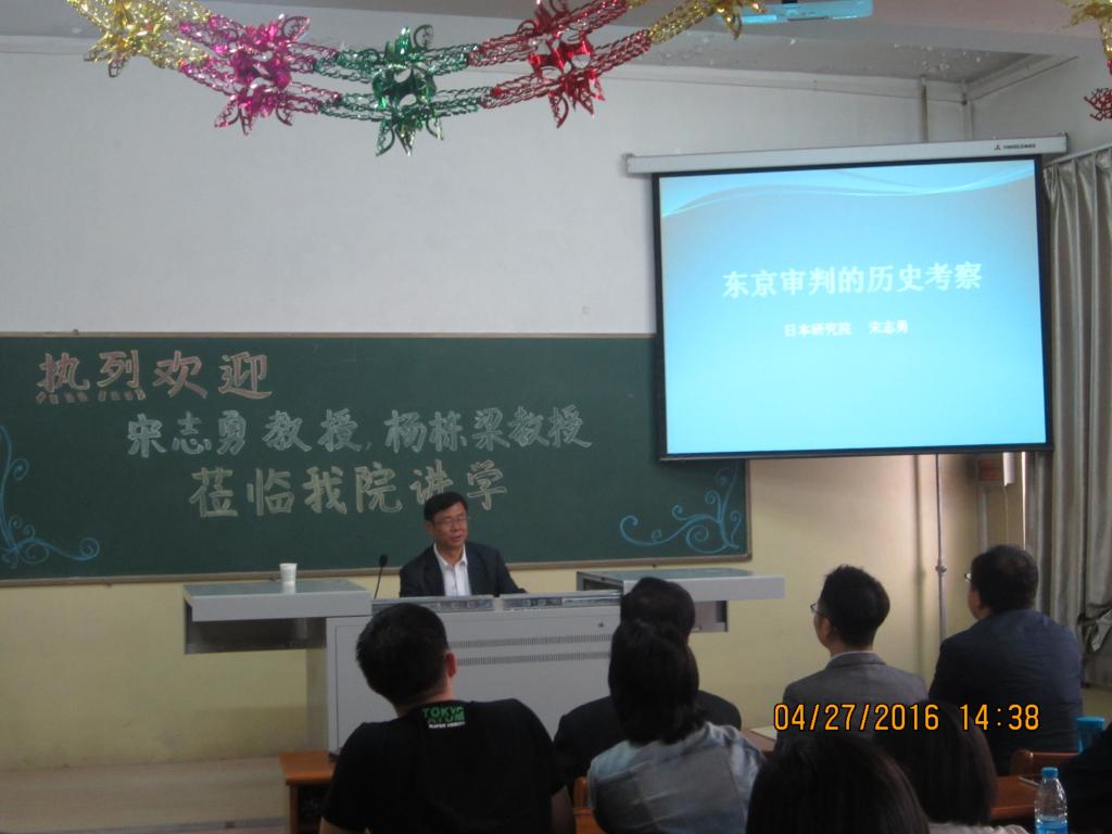 2016年4月27日下午,在01402教室,南开大学来宋志勇教授做了“东京审判的历史考察”的学术报告,对东京审判这一重要的历史事件全面阐述和深入分析。