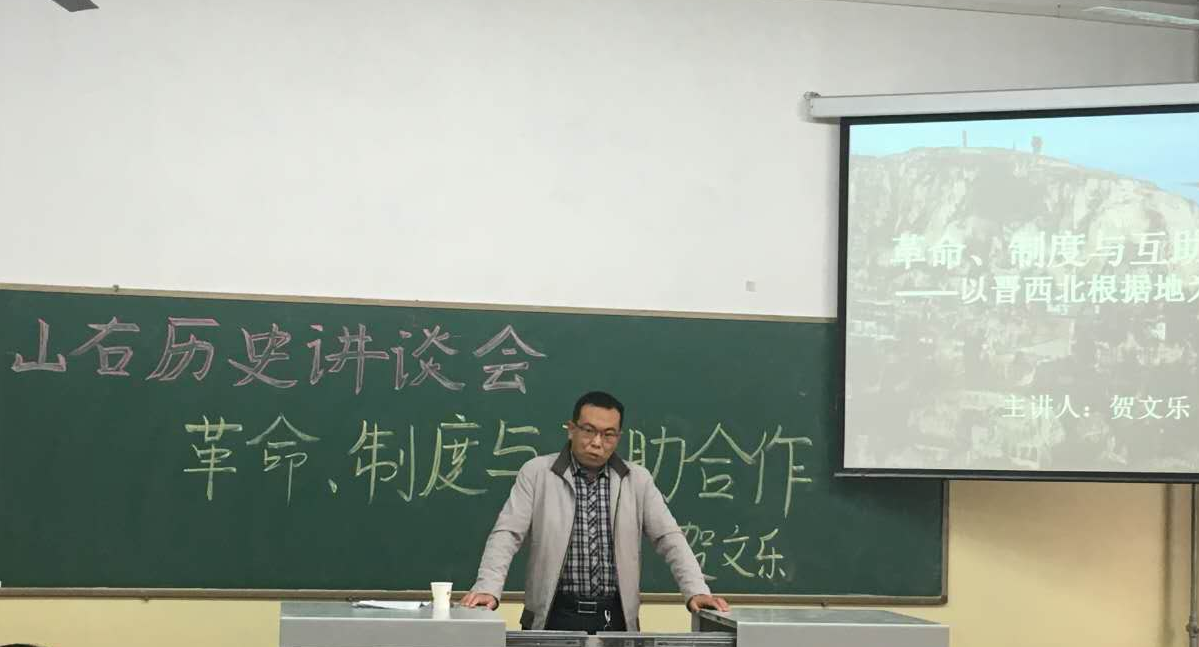 此次“山右历史讲谈会”学术沙龙的开坛之讲,由贺文乐博士主讲,题目是:《革命、制度与互助合作——以晋西北根据地为中心》。贺老师首先就研究缘起、研究方法、资料来源等做了介绍,进而导出文章主题——中国共产党领导下的互助合作运动。在论文的主体,贺老师分别从民选组长、公平算账、例行会议、严明纪律、有效激励等五个方面对晋西北根据地1944到1946年之间的互助合作运动进行阐述,在充分肯定互助合作运动成效的同时,也指出其受到组织规模、干部素质、传统余力乃至监督成本等因素的局限。