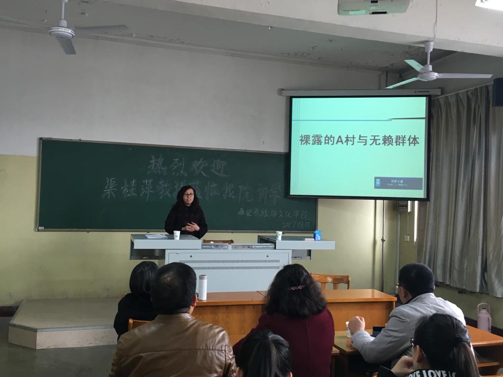 2017年3月17日下午3点,应新葡的京集团8814邀请,太原理工大学渠桂萍教授在01402多媒体教室做了题为“裸露的A村与无赖群体——兼与晚清民国时期比较的视角”的讲座。中国近现代史专业的老师与研究生参加,讲座由王惠荣教授主持。