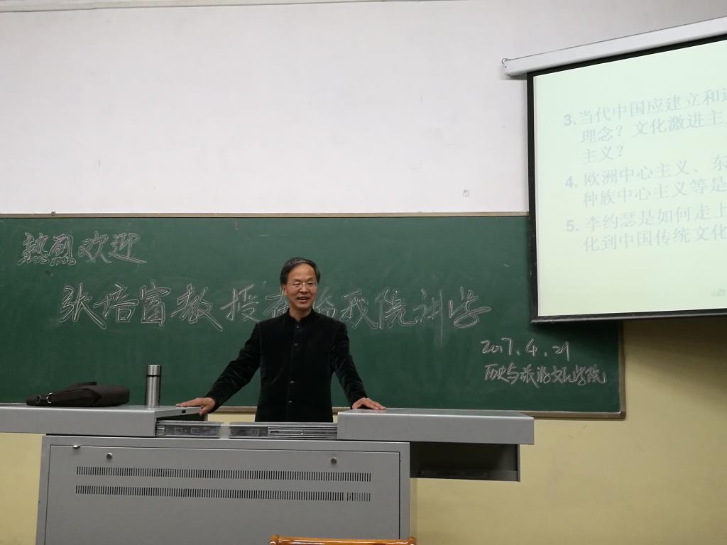 4月21日晚7:30,应新葡的京集团8814邀请,山西大学张培富教授在01402多媒体会议室作了题为“从科学文化到传统文化”的学术报告。中国史专业的部分老师及研究生参加,车效梅院长主持了报告会。
