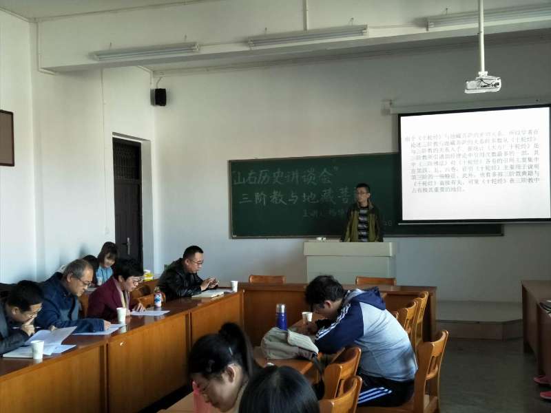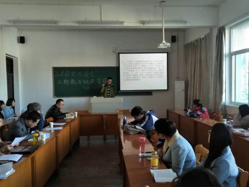 2017年11月22日下午15:00,我院在01402多媒体会议室举行了“山右历史讲谈会”学术沙龙活动,主题为《三阶教与地藏菩萨-兼论三阶教与净土教围绕地藏菩萨展开的争论》,本次沙龙由杨学勇副教授,侯慧明教授主持,刘丽副教授和王玉来博士点评。参加此次活动的主要是我院中国古代史的老师和硕士研究生。