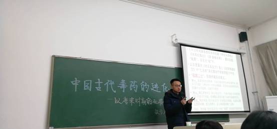 2018年12月14日下午四点到六点霍斌老师在我校进行了山右论坛学术报告,此次报告的题目是《中国古代毒药的进化史——以唐宋时期的砒霜研究为例》,参加此次报告的有本校学生及部分老师。