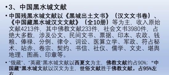 崔教授指出,黑水城文献的出土和收藏,主要是以科兹洛夫为代表的俄国收藏、以斯坦因为代表的英国收藏和以中国考古为代表的中国收藏,在这些藏品中,佛教的文献占据多数,约90%以上。崔教授也为我们指出俄藏黑水城文献所存在的问题,提醒大家在研究时和使用文献时注意甄别混淆的文献。之后又讲述了黑水城藏品的主要内容,目前俄、英关于黑水城已经刊布的文献以西夏文为主,佛教文献约90%以上;中藏方面以汉文为主,世俗文献胜于佛教文献,约占95%。崔教授列举了各国黑水城文献研究的编目,并特意标注和提醒大家要注意在研究中常用的文献。崔教授通过学术界近几年课题的申报,整理出研究的侧重点,让大家对目前的学术动态更为了解。