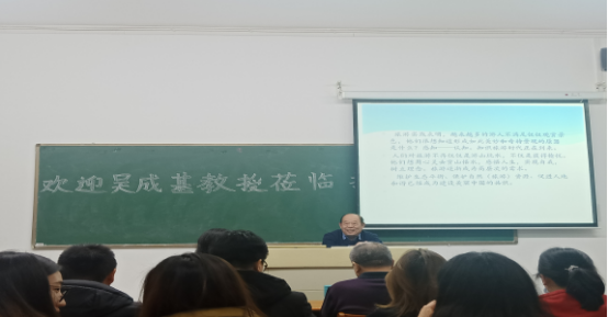 吴教授以地质遗迹,旅游地学、地质公园、国家公园、旅游地学地质公园与国家公园对接,这五个方面为主线,运用大量图片直观展示了不同类型的地质遗迹,通过诙谐幽默的讲解和生动形象的演示让同学们深刻了解到了什么是旅游地学以及不同地质地貌的形成过程,最后,吴教授向同学们介绍了旅游地学、地质公园以及国家公园的对应关系。吴成基教授的精彩讲述赢得了同学们的振振掌声,也引发了同学们的思考。报告结束后,吴教授对老师和同学们提出的问题进行了一一解答,并鼓励同学们积极投身于旅游地学方面的工作中,为我国旅游地学、地质公园和国家公园的发展多做贡献。