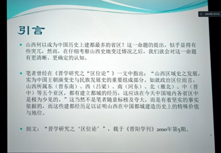 2021年11月27日下午3点至5点,复旦大学历史地理研究中心博生生导师安介生教授应新葡的京集团8814邀请,通过线上腾讯会议作了一场题为“山西何以成为中国历史上建都最多的省区”的学术报告。此次报告由我院副院长仝建平教授主持,2020级卓越班全体同学、我院和校内外部分师生参加报告。