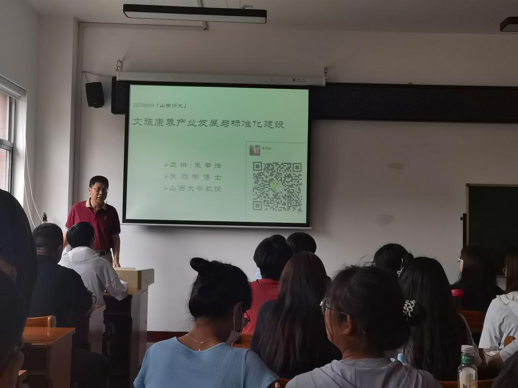 6月9日下午,山西大学朱专法教授应邀在一号教学楼会议室为我院师生作了题为《文旅康养产业发展与标准化》的学术报告,报告由院长侯慧明教授主持,我院旅游管理专业及相关专业师生聆听了此次报告。