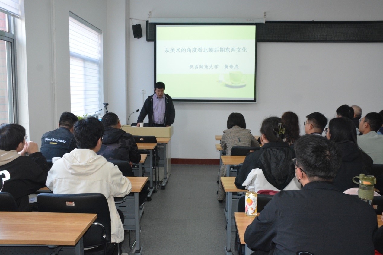 10月30日下午,陕西师范大学历史文化学院博士生导师黄寿成教授应邀在一号楼二层会议室为我院师生作了题为《从美术的角度看北朝后期东西文化》的学术报告,报告由仝建平教授主持,我院研究生和部分中国史专业教师聆听了报告。