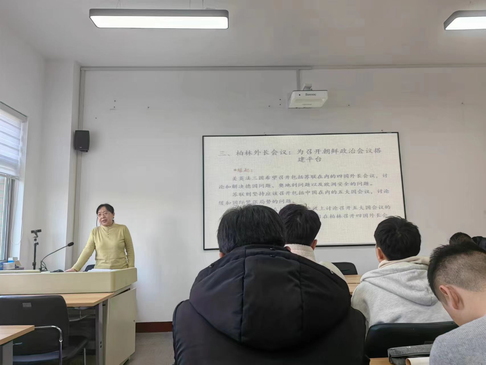 11月22日下午,山西大学历史文化学院宋晓芹教授应邀在1号楼1210会议室为我院师生做了题为《朝鲜停战后相关国家对和平解决朝鲜问题的努力》的学术报告,报告由徐继承教授主持,全体世界史专业研究生以及部分教师聆听了此次报告。