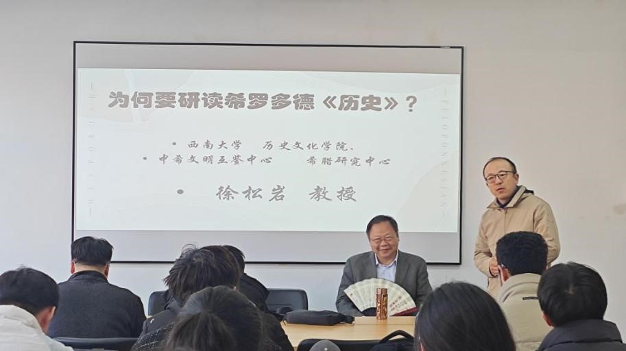 12月2日上午,西南大学历史文化学院徐松岩教授应邀在我院1210会议室作了一场题为《我们为什么要研读希罗多德<历史>?》的讲座。讲座由王志超教授主持,世界史研究生和部分教师到场聆听讲座。