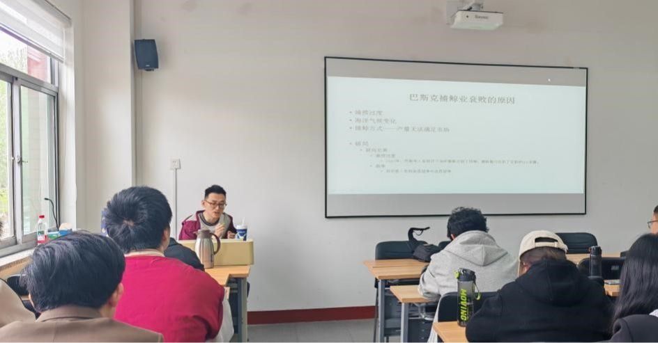 讲座中,张宏宇副教授系统梳理了捕鲸业的历史演变及其社会经济影响。他指出,近代捕鲸业除传统照明用途外,还为紧身衣制造和工业革命提供原料。在北美殖民地时期,捕鲸业不仅推动了美国早期资本化进程,促使卡特尔组织形成,更依托贵格会构建的“经济-宗教-家族”网络,深度影响了工业发展。以楠塔基特为核心,这种独特的关系网络在英美战争期间持续发挥作用。研究表明,北美殖民地借助捕鲸业与宗教势力拓展了商业版图,而美国资本化进程又推动捕鲸业规模扩张,形成双向驱动的历史循环。